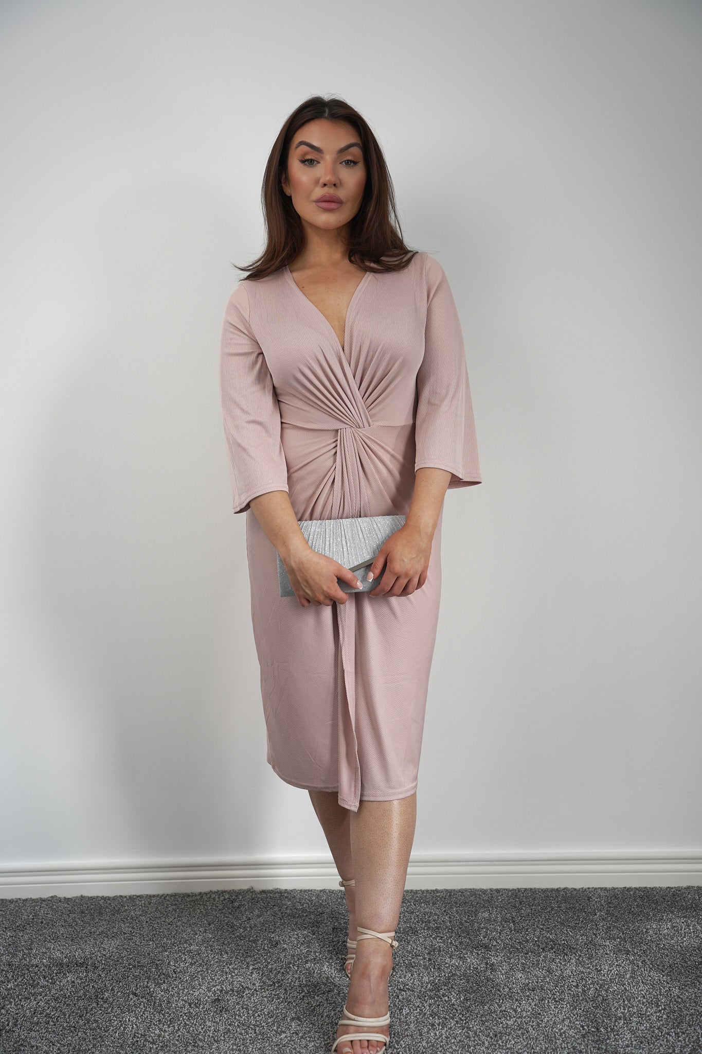Our Devon Dress is Beautifully Plain a Gorgeous Blush Pink Colour With a Knot Style in the Middle to Draw in the Waist. Midi length. Just beautiful for all occasions.