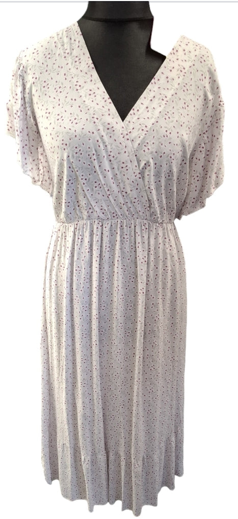 Cross front dress, with elasticated waist.