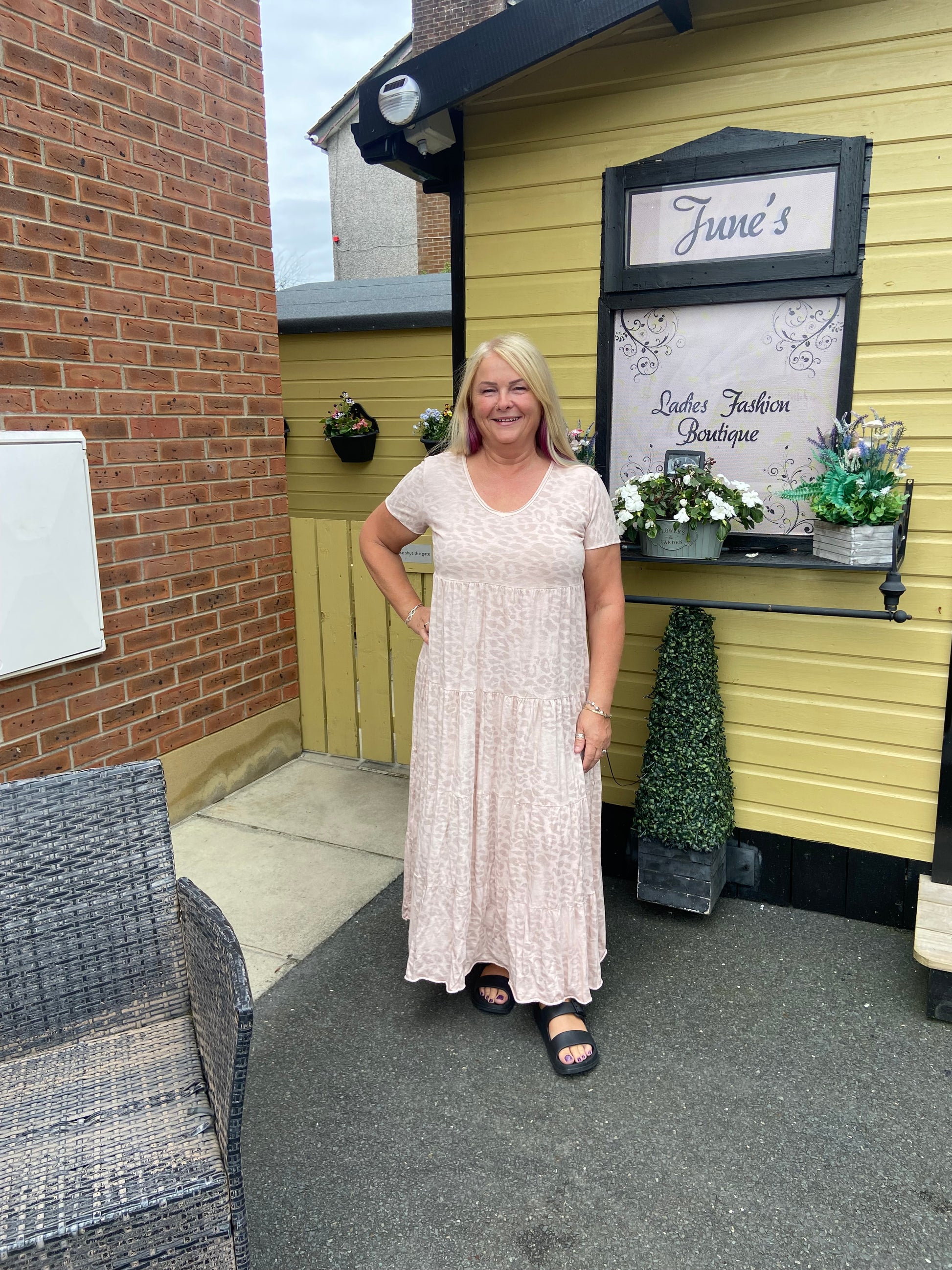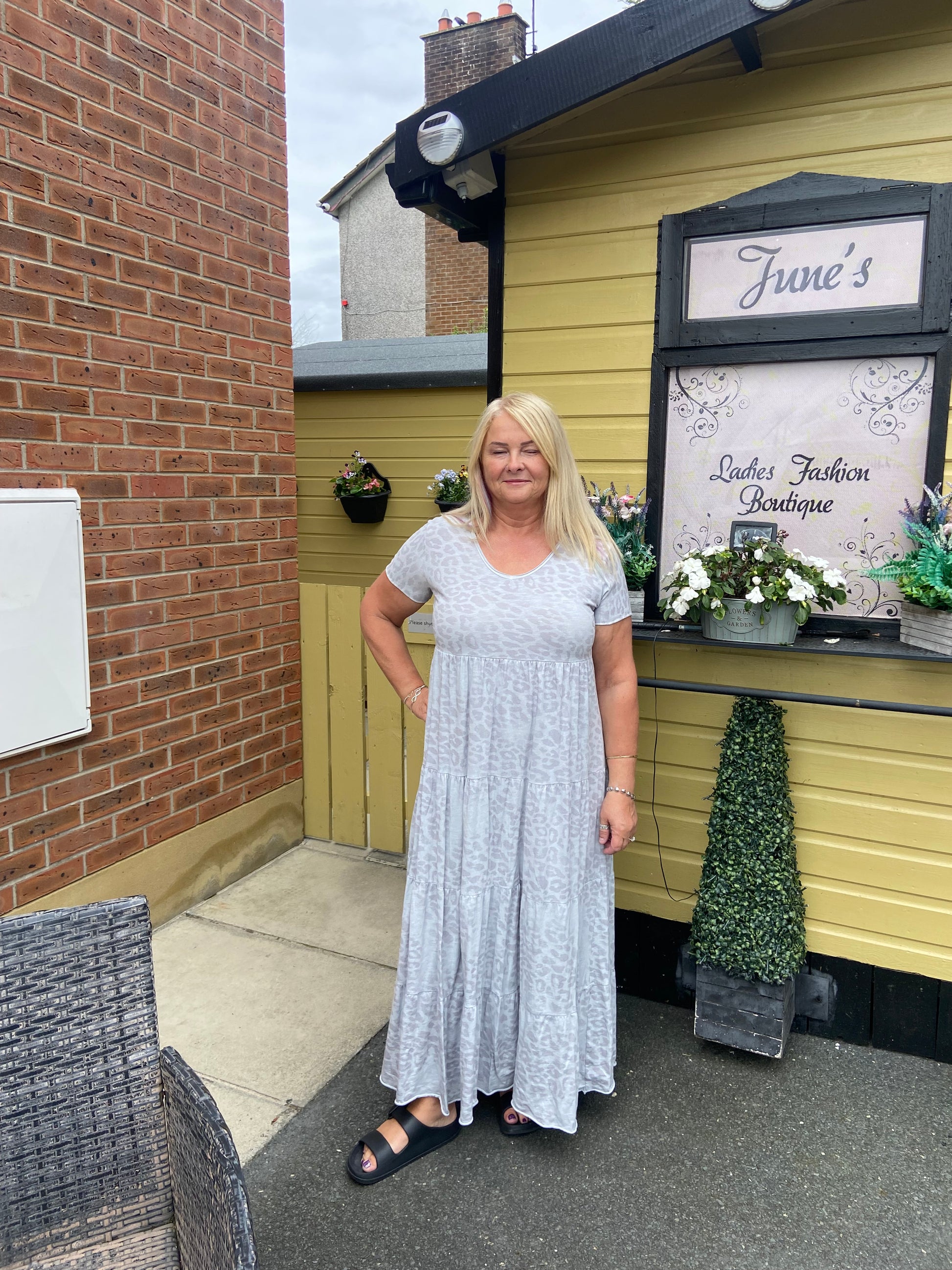 A Casual Dress with tiered Skirt, avaliable in both Plain and leopard print pattern