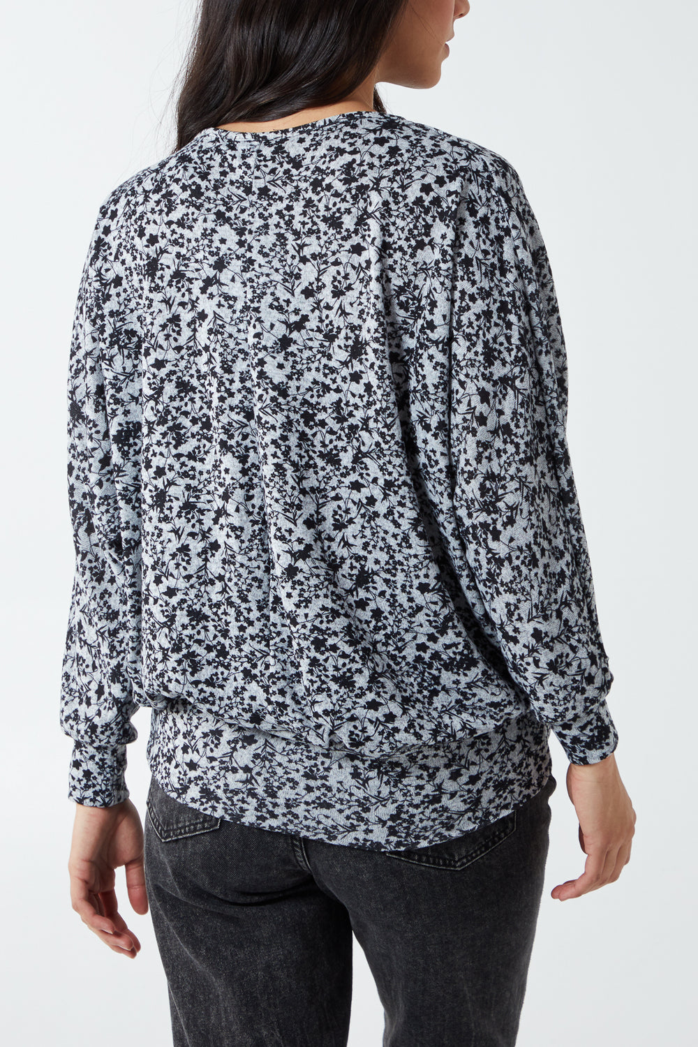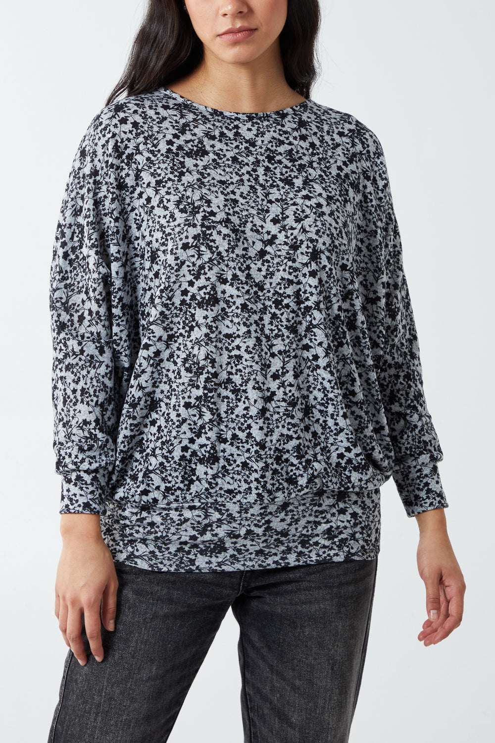 Go for comfort with this beautiful floral print batwing top. Featuring an oversized fit ideal for staying cosy. Style it with skinny jeans and white platform sneakers.