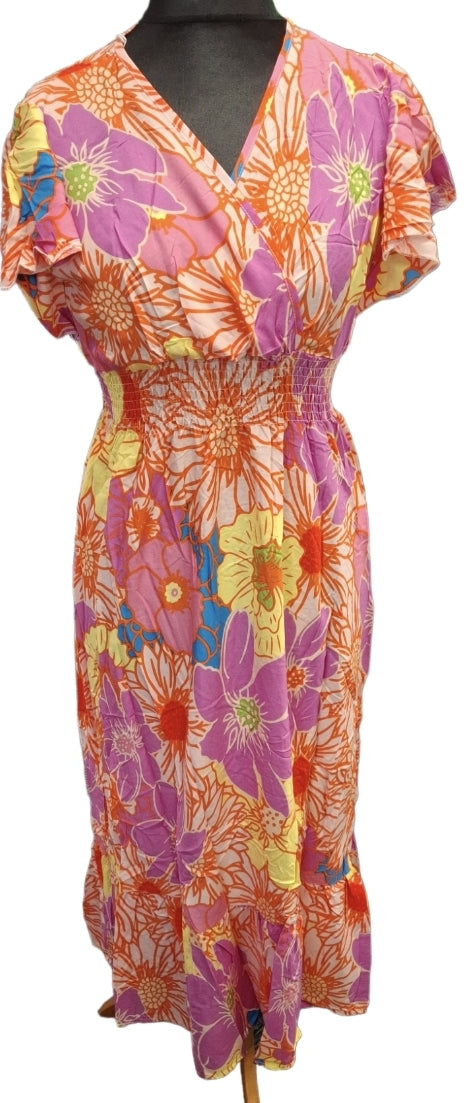 Gorgeous bright floral dresses in a range of different colours. Retro style. Perfect for daily wear in warmer weather.